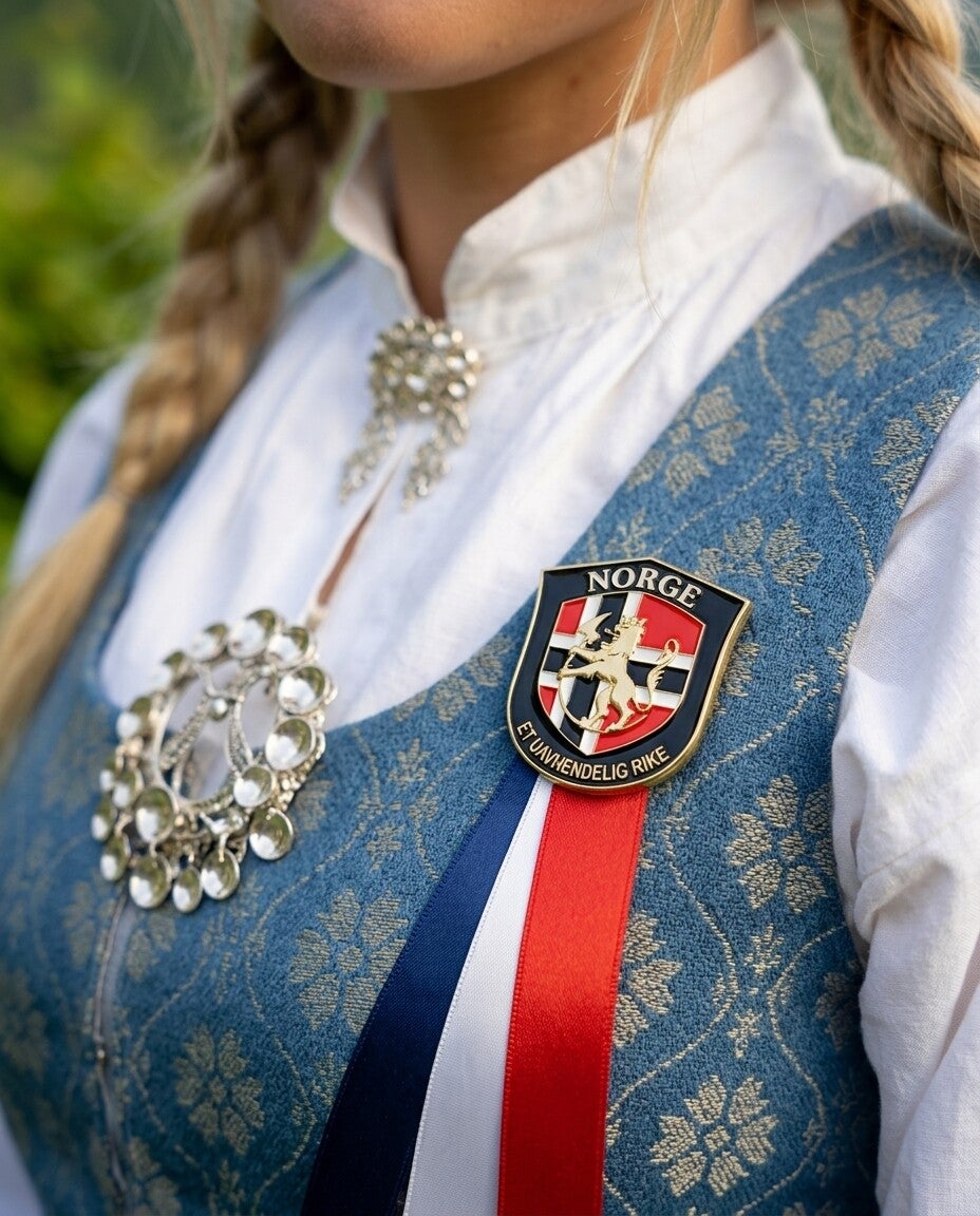17Mai medaljen med utdrag fra paragraf en i grunnloven.